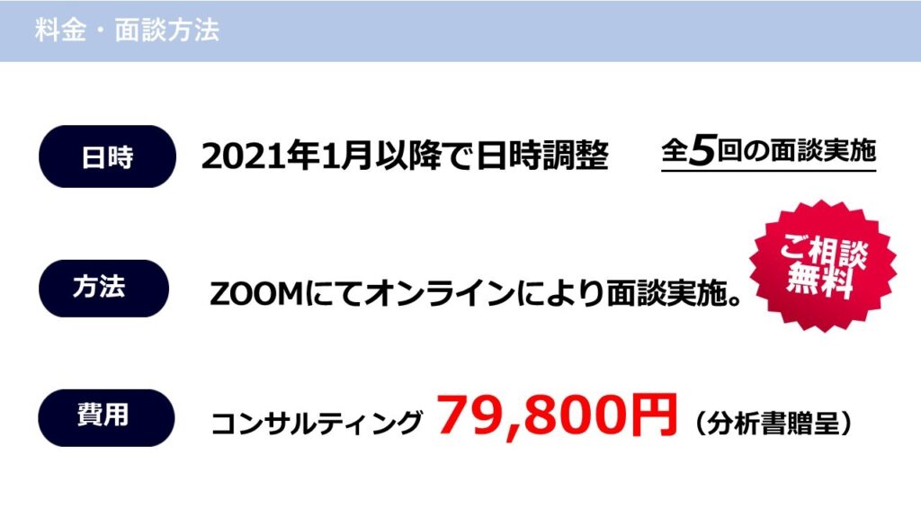 お客様からは「他のカウンセリングルームと全然違う。もっと早く見つけていればよかった」「聴いてくれるだけでなく具体的なアドバイスがもらえるところが本当に良かった」などというお言葉をいただくことも多く、よくある「聴いて終わり」というカウンセリングではなく、具体的な目標設定と期間を定めてアドバイスをするやり方はお客様から好評をいただいております。